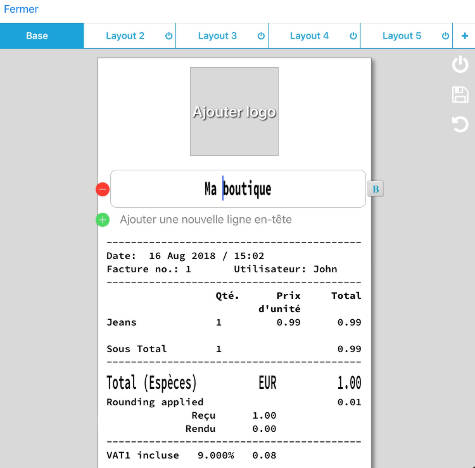 Chaque layout du ticket de caisse put être personnalisé complètement selon vos vœux.