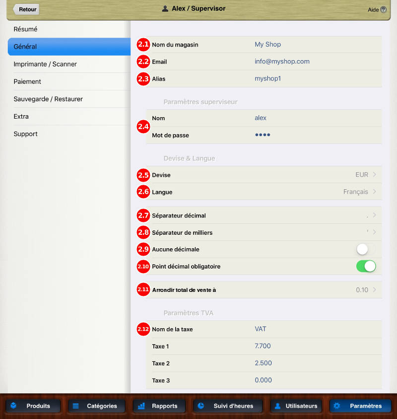 Avec cette fonction, vous pouvez concevoir et personnaliser le reçu de caisse qui sera imprimé ou envoyé par courrier électronique à vos clients.