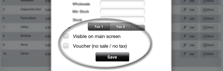 Voucher-Option: Define a category as „Voucher“. Sales into a „Voucher“-tagged category will not be added to the general sales but shown dedicated on the close reports. Also „Voucher“-sales will not contain VAT. Additionally, a payment-button „Voucher“ is created to manage Voucher-sales